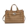 Geantă pătrată mică portabilă, de culoare uni, cu goluri, la modă, pentru femei, nouă, versatilă, casual, de umăr, tip poștaș