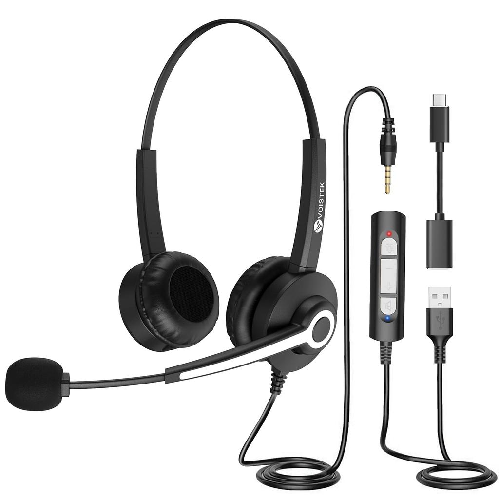 Căști Noi Voistek, USB 3.5mm Type-C, Binaurale, cu Microfon cu Anulare a Zgomotului, Mufă cu 3 căi, Ideale pentru Skype, Conferințe Web, Birou, Centru de Apeluri,