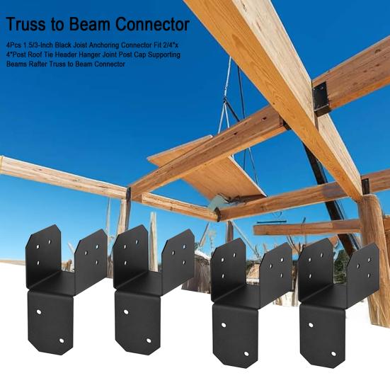 4 buc Conector de ancorare grindă 1,5/3 inch Negru Potrivit pentru stâlp 2/4"x 4" Legătură acoperiș, Grinzi de susținere, Conector grindă căprior, Conector grindă căprior, Capac stâlp