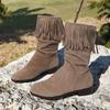 Botine cu ciucuri mate vintage, de toamnă, pentru femei, stil western, cu vârf rotund, tip pulover, cu talpă moale, antiderapante, cizme cu tub mediu