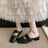 French Retro Temperament Baotou Sandals Women's Summer Square Toe Shallow Mouth Versatile Block Heel Half Slip Outside Shoes