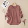 ZANZEA Bluză casual pentru femei, cu decolteu în V, de culoare uni, cu mâneci 3/4