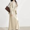 Jachetă Pulover Temperament cu Gât Rotund pentru Femei Rochie Mid-length Costum cu Mâneci Lungi