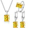European And American Romantic Fashion Rectangular Ring Women'S Personality Square Ear Buckle Earrings Pendant Necklace Three-Piece Set