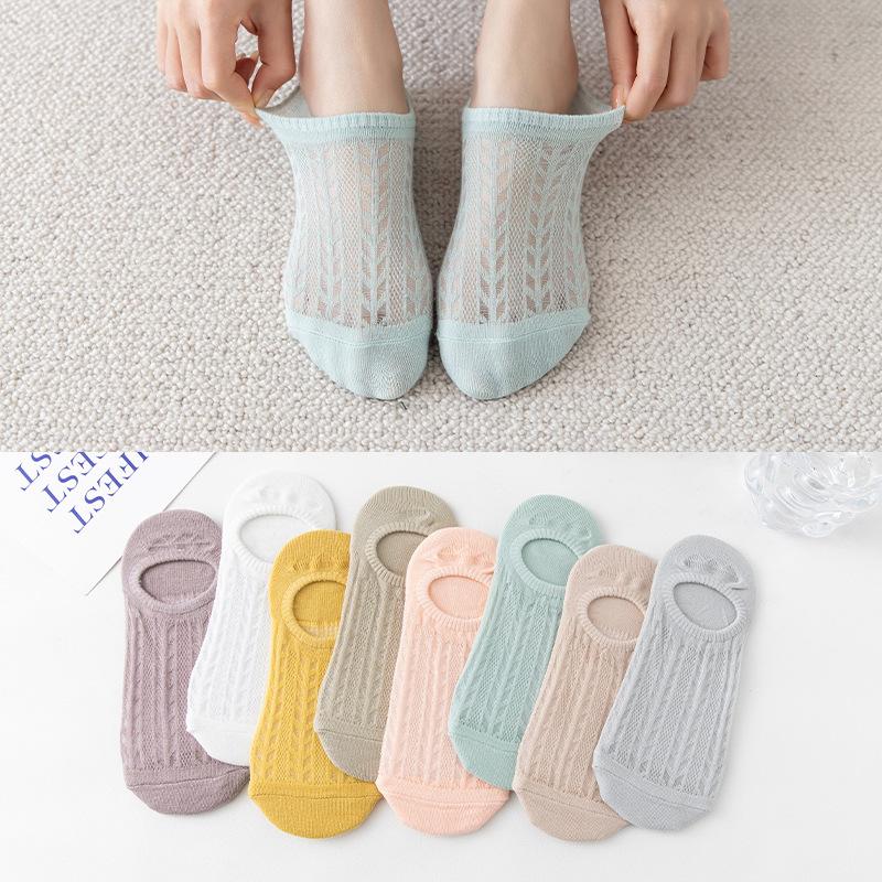 Ladies Spring and Summer Thin Simple Mesh Pure Color Breathable Shallow Mouth Invisible Socks