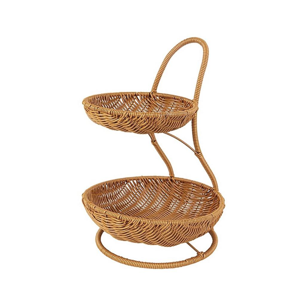 Coș de Fructe cu 2 Nivele Împletit Manual Decorativ Tavă Stativă Coș Nou pentru Alimente Camera de Zi