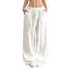 Spring and Summer New Fashionable Long Pants for Women: Drawstring Elastic Waist Pocket Wide-leg Pants