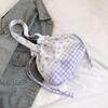 Săculeț cu șnur mov cu model floral în carouri, Săculeț drăguț de călătorie, Săculeț cu șnur, Săculeț de sub braț