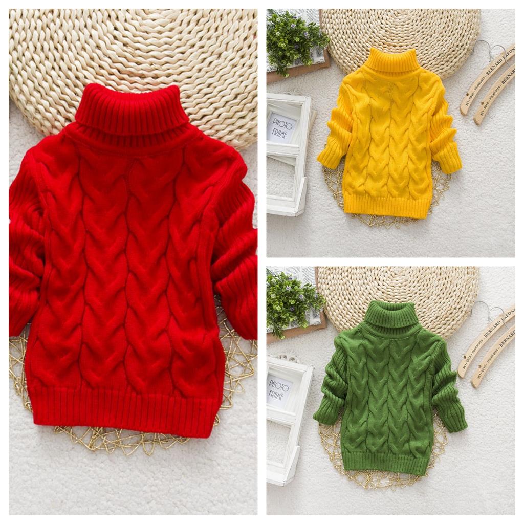 Children's Sweater Autumn New Style Solid Color High Neck Knitted Top for Boys and Girls
