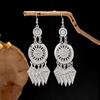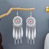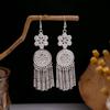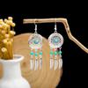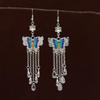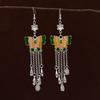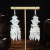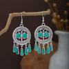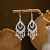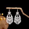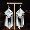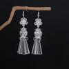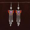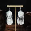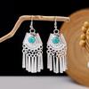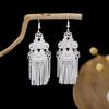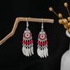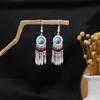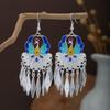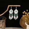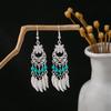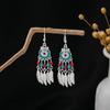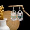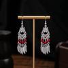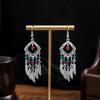 Ethnic Feather Tassel Dangle Earrings - Imitation Miao Silver Style, Popular Tourist Item, Cute Bean Design.