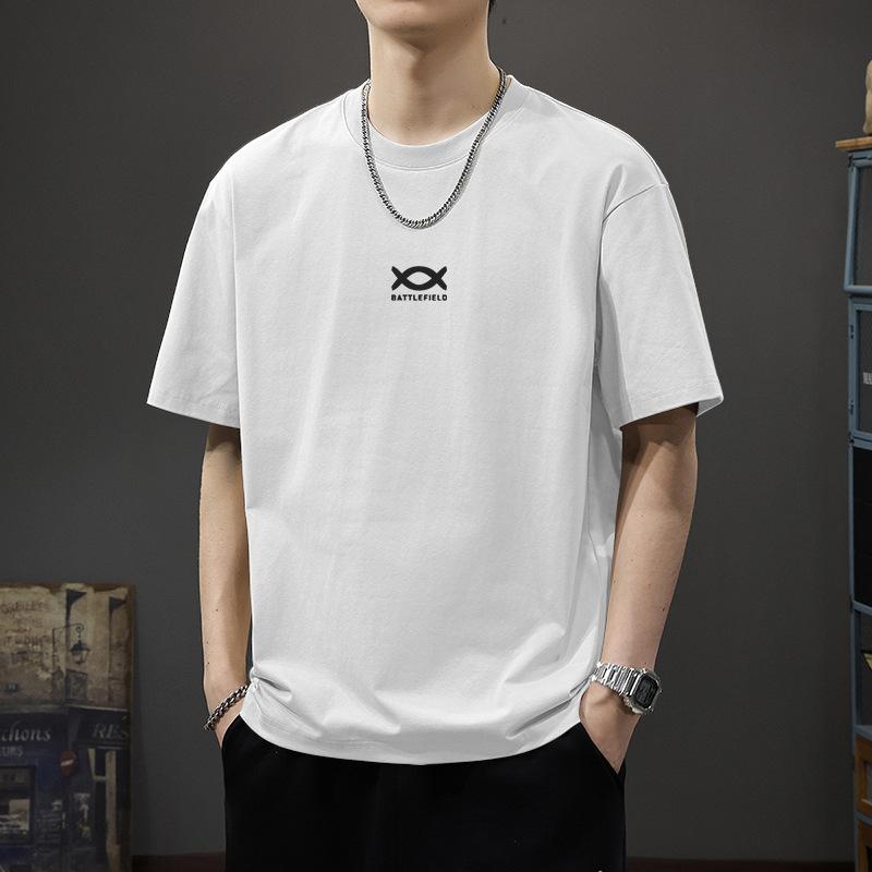 Cotton short sleeved t-shirt for men and women, white t-shirt with black shirt underneath, men's half sleeved round neck t-shirt