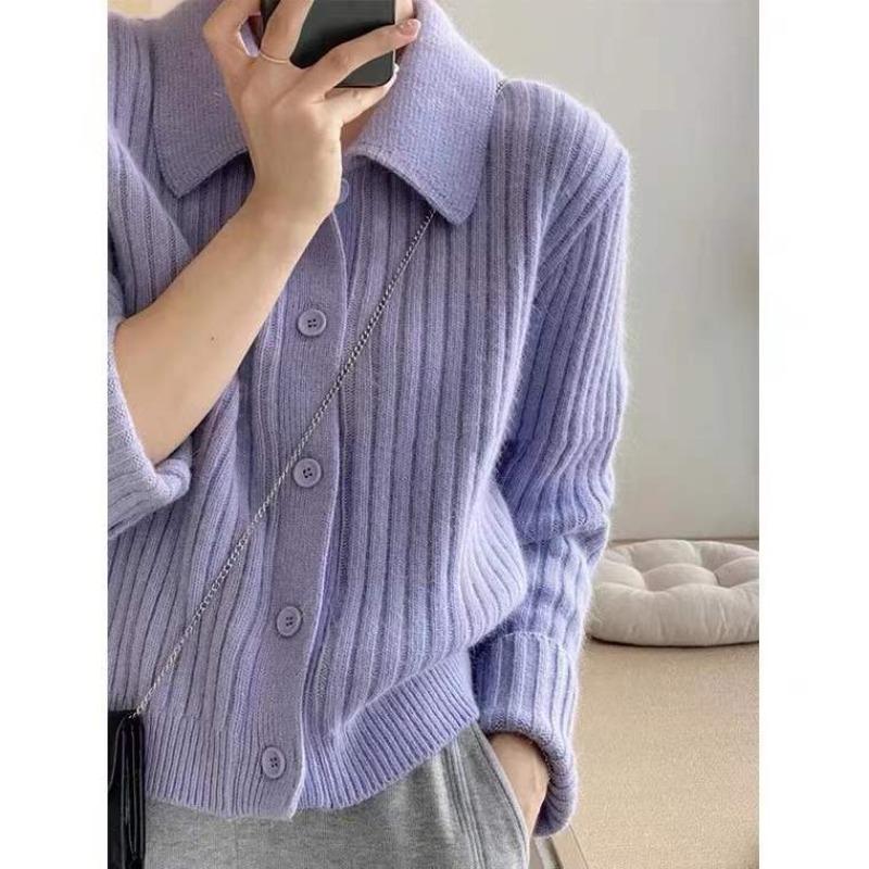 Cardigan Tricotat cu Mânecă Lungă, cu Rever, de Toamnă Iarnă, Culoare Solidă, Larg, Simplu, Topuri, Paltoane Scurte Casual pentru Femei, Îmbrăcăminte Elegantă de Birou