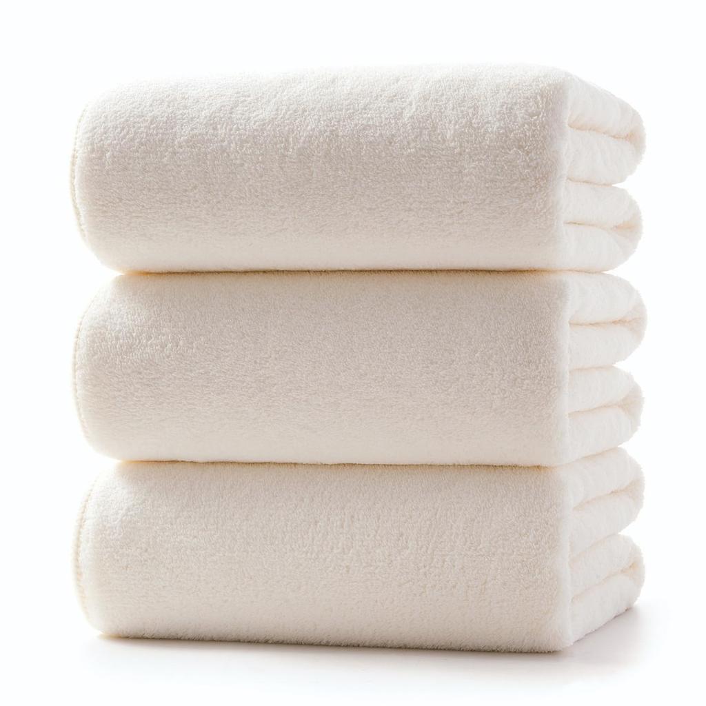 Set of 3 Ivory Bath Towels: Size: Approx. 70 x 140 cm, Weight: Approx. 300 g (per towel). Perfect for business trips, travel, bathing, and more, these towels will satisfy the whole family.