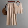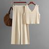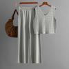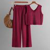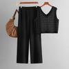 Summer Fashion Suit V-neck Hollow Knitted Vest top Casual Wide Leg Pants Two-piece Set