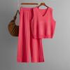 Summer Fashion Set V-neck Solid Color Knitted Tank Top High Waist Casual Wide Leg Two Piece Set