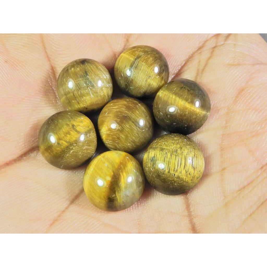 11MM Natural Tiger eye Round Cabochon Loose Gemstone 7Pcs Lot 34Cts. A-520