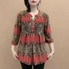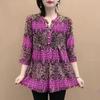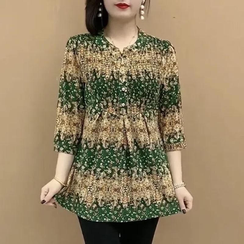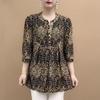 Pulover de vară pentru femei cu gât O, cu nasturi îmbinate, imprimeu, la modă, larg, minimalist, versatil, casual, cu mâneci 3/4, topuri din șifon