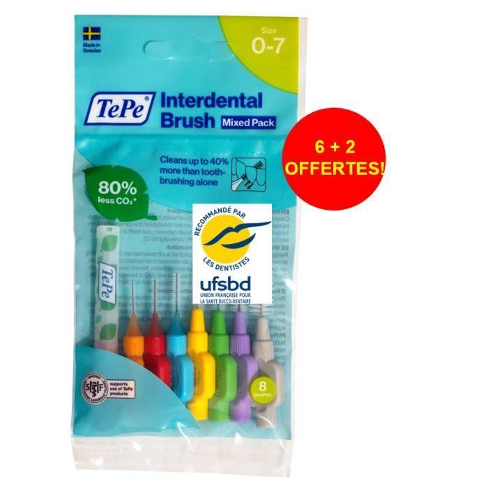 Brossettes interdentaires TePe Originales - TEPE - Multi-tailles de 0.4 à 1.3mm ISO 0 à 7 - Pack de 8