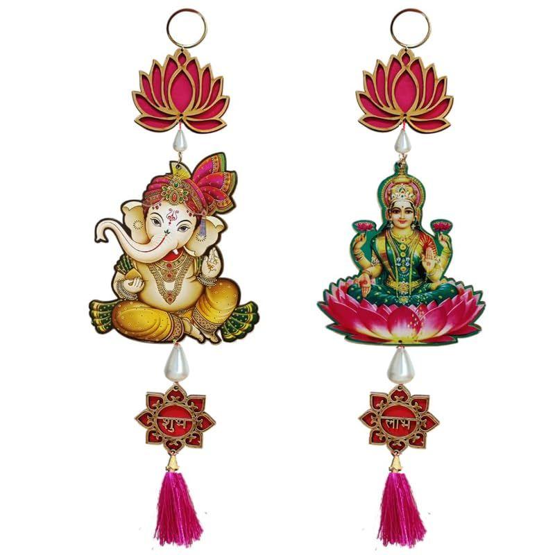 Handmade Shubh Labh Laxmi Ganesh Lotus Hangings, Temple Decoration, Diwali/Ganpati Decor, Lotus Decoration Items, Sohn/Shun/Shoon, Puja Tags, Door Tags, 1 Pair I.E. Pack Of 2,