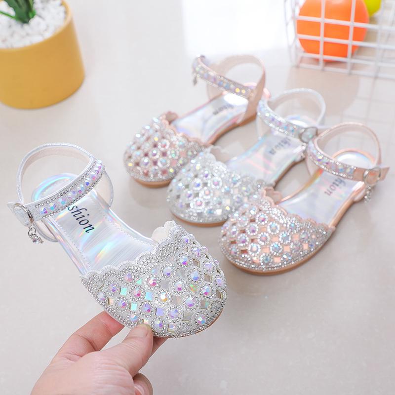 Girls Half Sandals Shiny Crystal Kids Princess Sandals Elegant Ins Trendy 2025 Summer New Girls Dance Shoes for Party Wedding