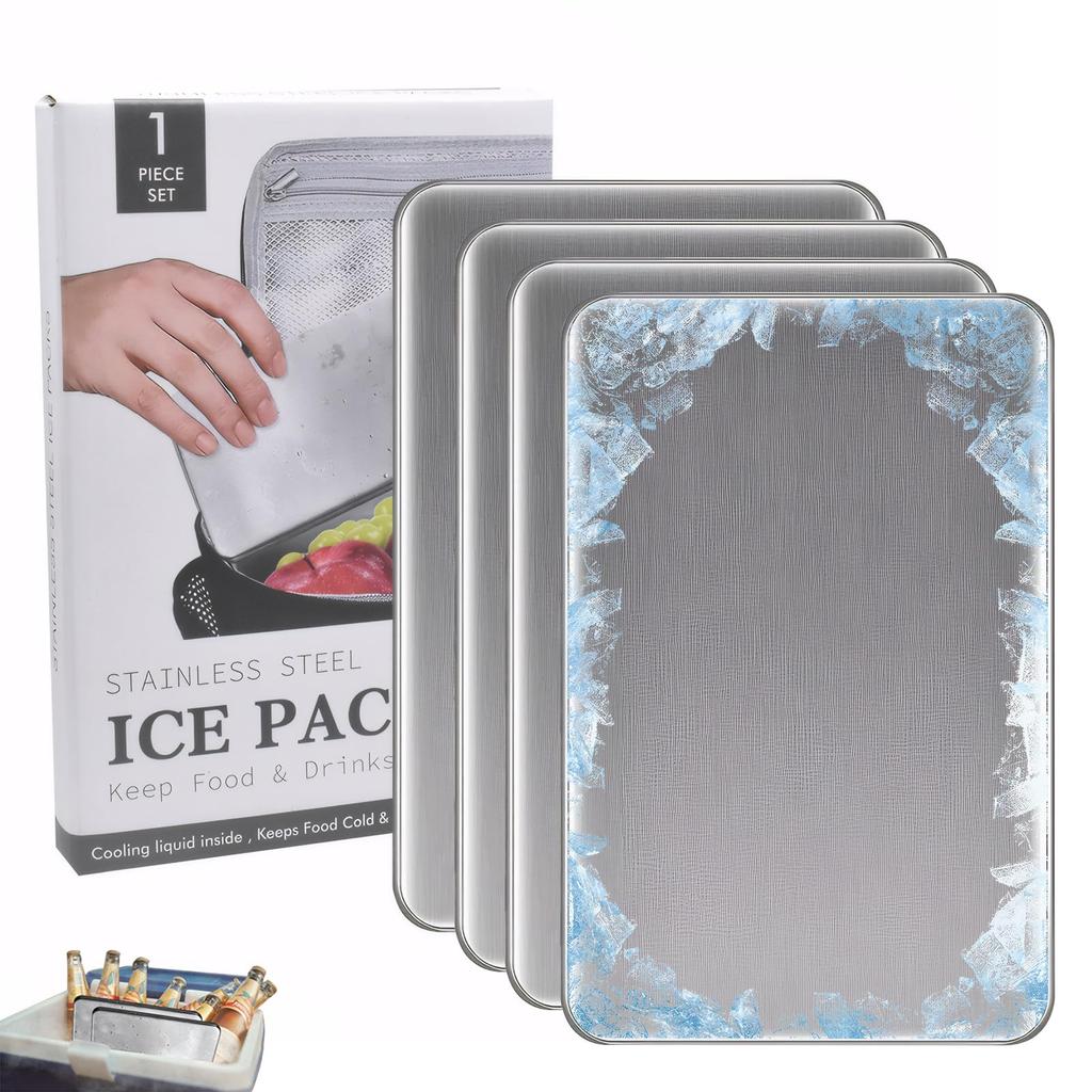 OKUYOSHI Stainless Steel Ice Convenient for Cooler Shopping and Square Set of 4 Packs, Long-Lasting Cooling, Reusable, Powerful, Lunchboxes, Picnics,