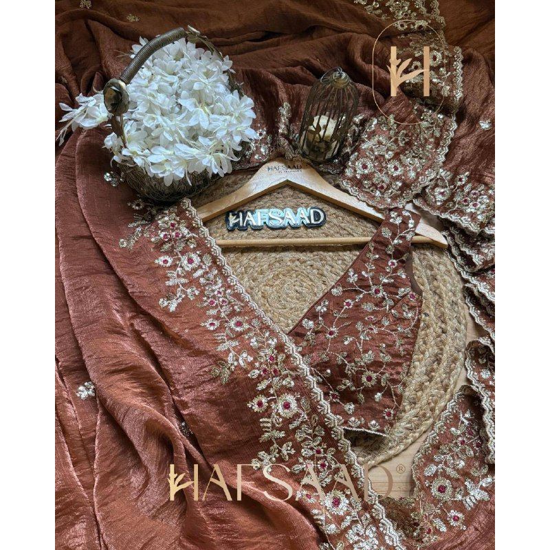 2)Țesătură saree : Material greu moale fandy șifon mătase cu c- pallu zari și paiete, bordură cu lucru decupat pe saree