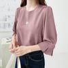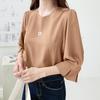 ZANZEA Bluză lejeră cu mâneci 3/4, de culoare uni, cu gât rotund