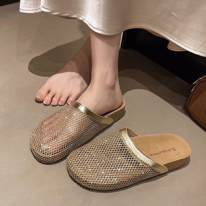 Non-slip flat-bottomed cool slippers 2025 summer new retro woven hollow and breathable outer bag head slippers