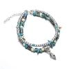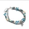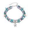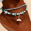 Vintage Turquoise Starfish Turtle Foot Ornaments Beach Layer Beaded Hollow Double Anklet for women Valentine's Day Gift