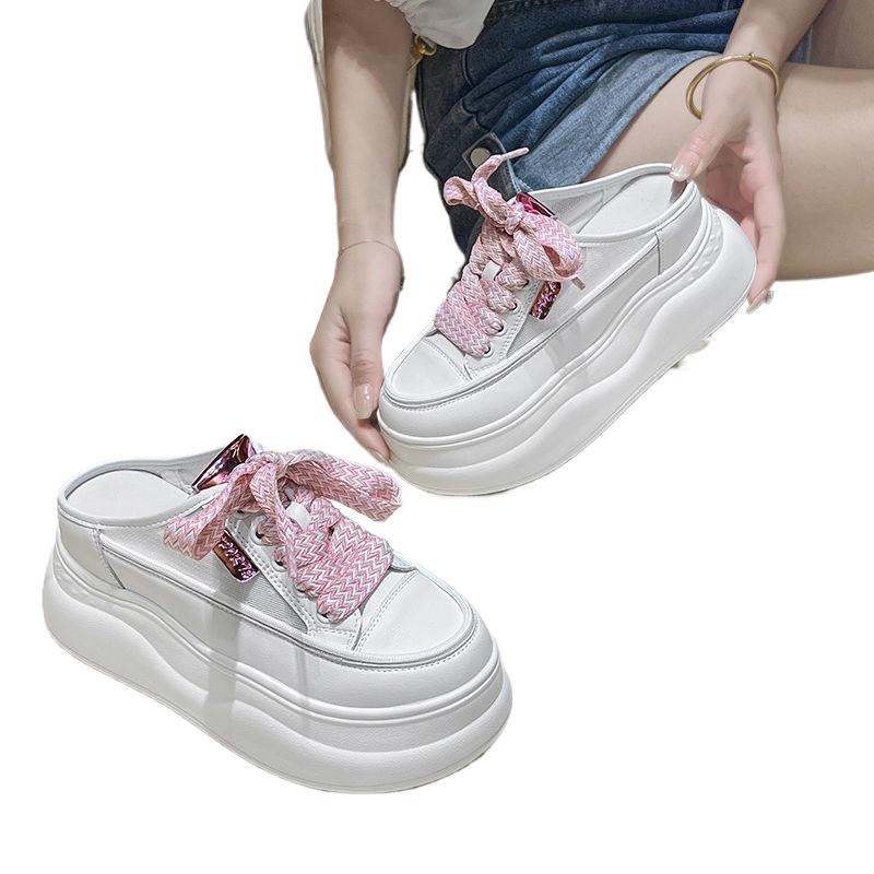 2025 Vara Noi Papuci Baotou Jumătate Papuci de Piele cu Talpă Groasă de Exterior Sandale Femei Creștere Înălțime 8cm