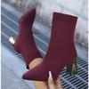 SyfIyno New Wine Red Black Womens Boots Pointed Toe Shoes Elasticity Knitting Short Spring Autumn Shoes Elegant High Heels Shoes