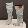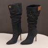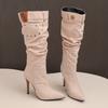 Women's high-heeled boots sexy European and American style pointed-toed thin-heeled large-size cowboy mid-boots