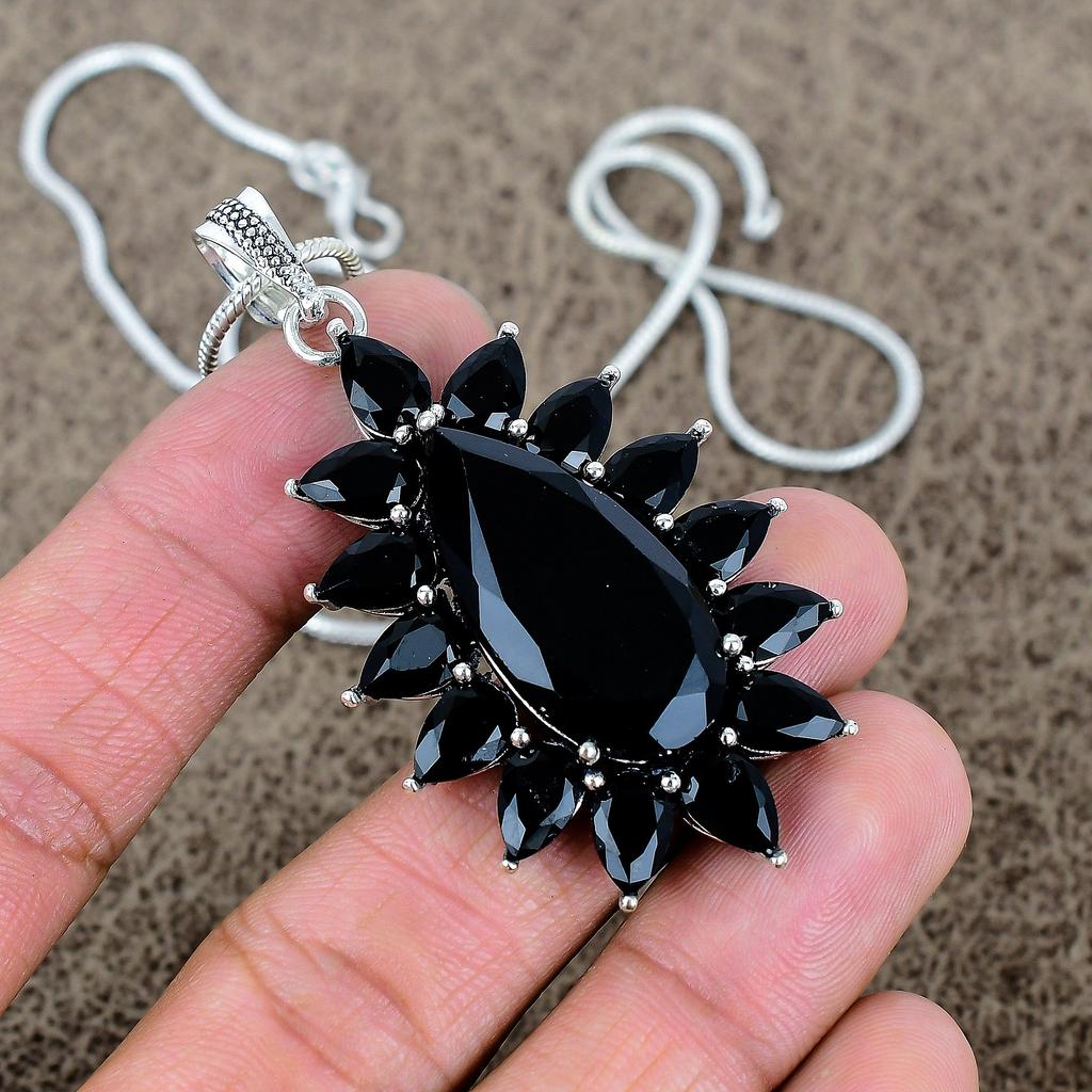 Black Spinel Gemstone Handmade 925 Sterling Silver Jewelry Pendant 2.48" KKG-291
