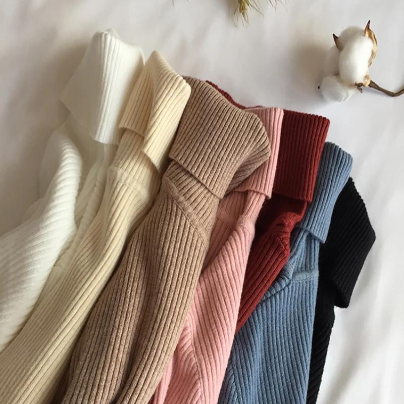 Pulover gros de toamnă iarnă pentru femei Pulover tricotat cu nervuri Pulover cu mânecă lungă cu gât țesut Pulover subțire, moale, cald, pentru femei