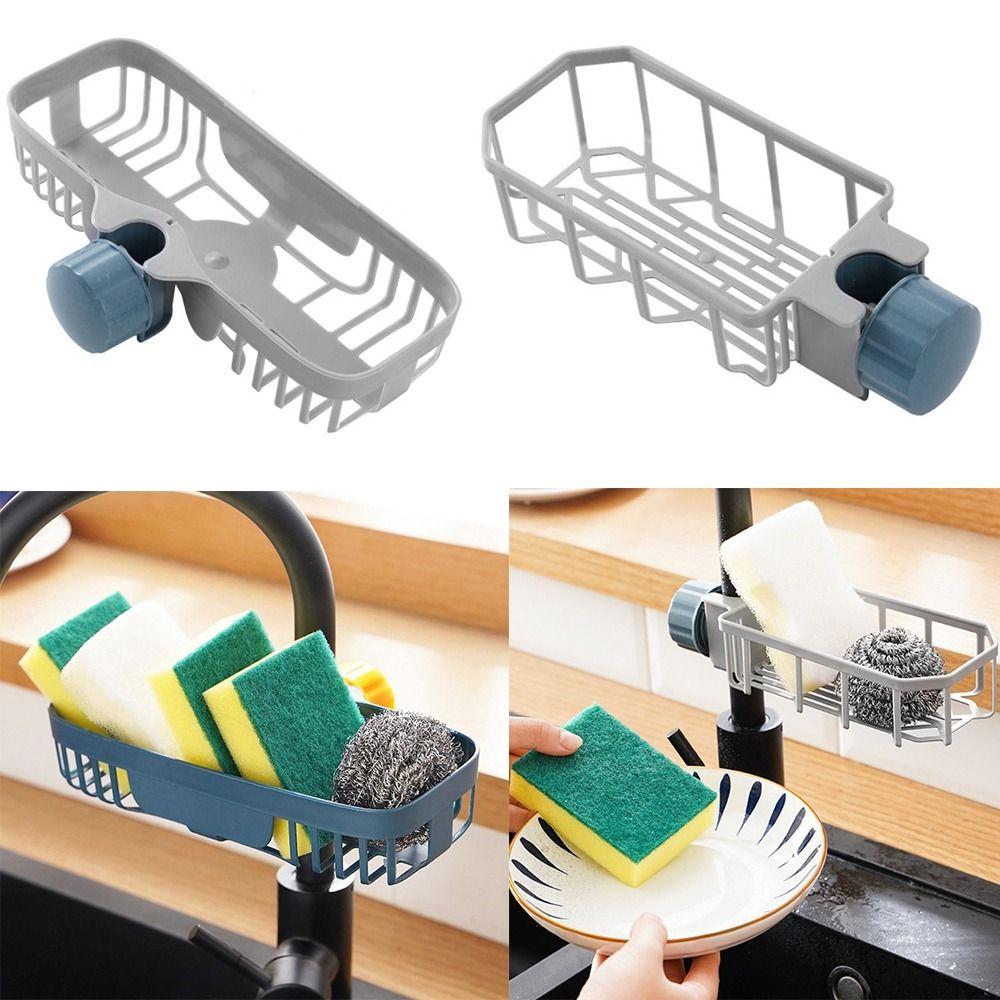 Adjustable Faucet Holder No Drill Sponge Storage Durable Sink Drain Rack Bathroom Kitchen
