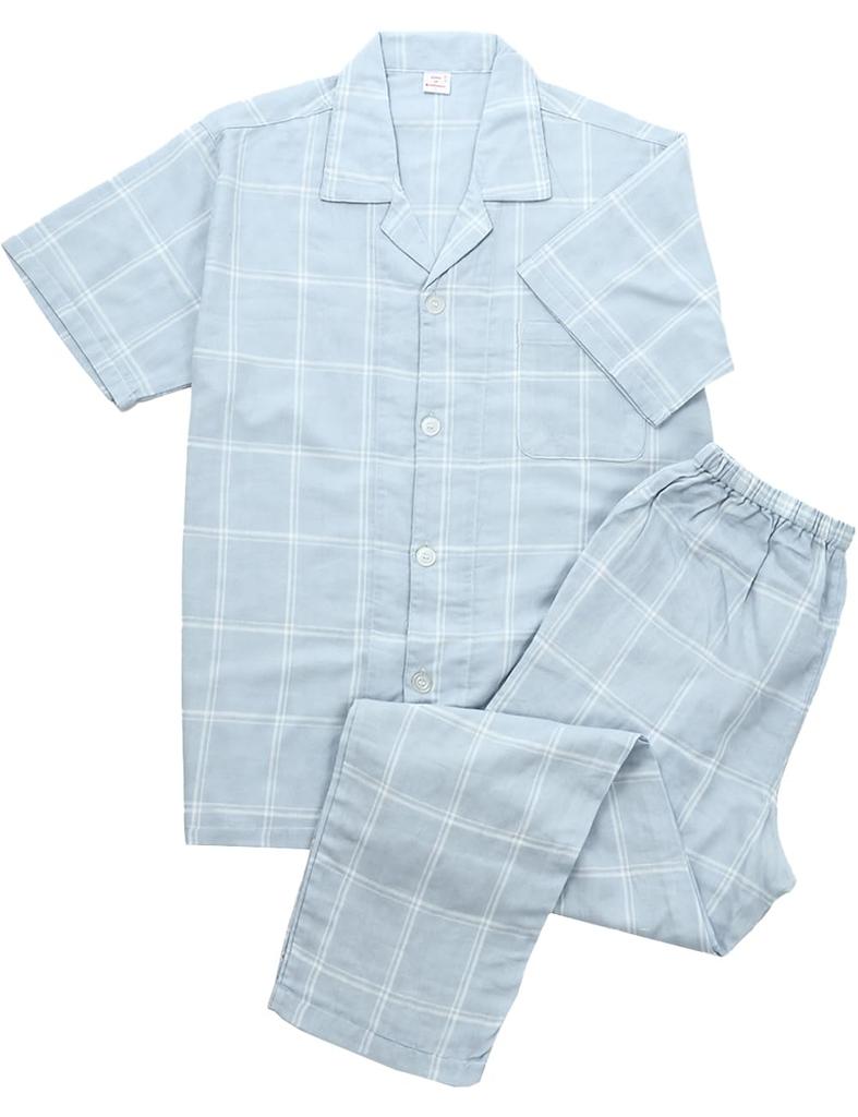 Gifts of Brilliance Gauze Short Sleeve Summer Luxury Men's Pajamas, Style, (2XL, Blue) PJ_2765