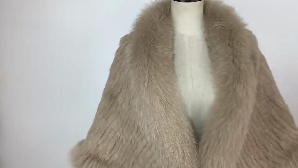 Women Real Rabbit Fur Shawl Scarf With Fox Fur Collar Winter Warm Knitted Rabbit Fur Poncho Girls Party Fashion Accessories