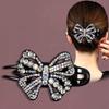 Korean Elegant Rhinestone Bow Hair Clip - Three-Tooth Duckbill for Updos