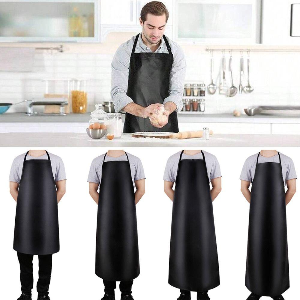 Oil-proof Chef Apron PU Leather Nail Art Cafe Workwear Durable Kitchen Apron Unisex