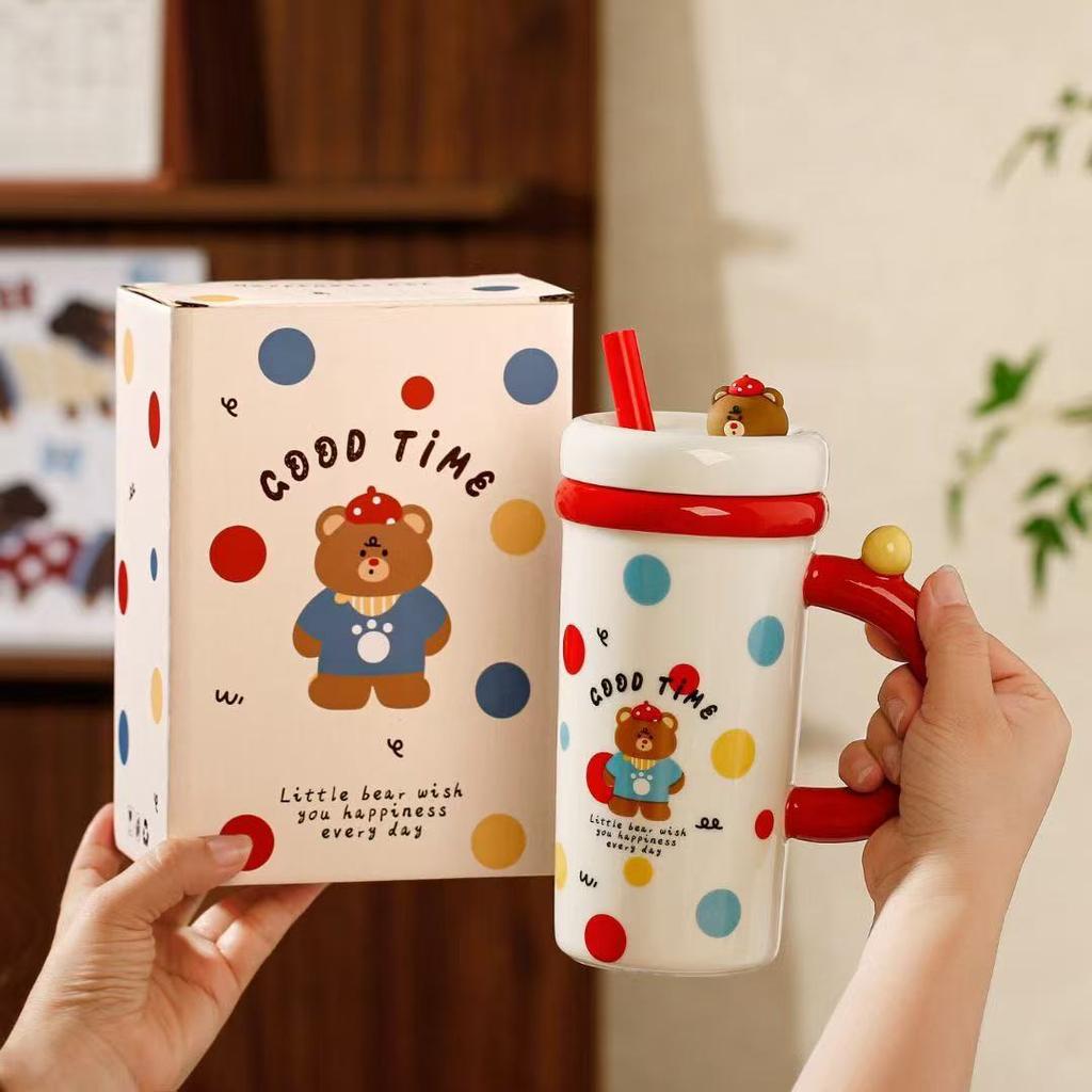 Large Capacity Summer New Straw Cup Ceramic Kettle Cup with Lid Cartoon Mug Water Cup