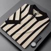 New Summer Minimalist Color Striped Casual Slim Fit British Retro Style Personalized Flip Collar Half Zip Knit Polo Shirt
