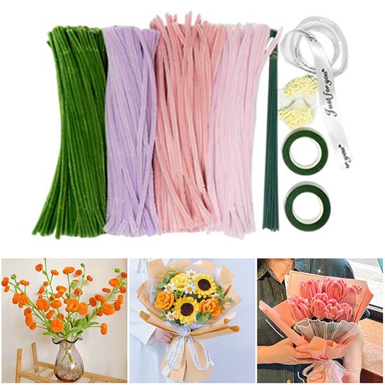 The flexible wire core covered with fluffy cotton allows easy twisting into various shapes, making it ideal for crafting flowers, animals, and more. Unlike traditional flowers, these chenille wire creations are long-lasting and perfect for seasonal decorations.