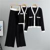 Costum Tricotat cu Gât în V de Toamnă pentru Femei, Pantaloni Largi, Vestă, Cardigan Tricotat, Set din Trei Piese