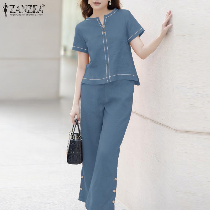ZANZEA Bluză și pantaloni cu mâneci scurte pentru femei Seturi de costume din două piese de vară