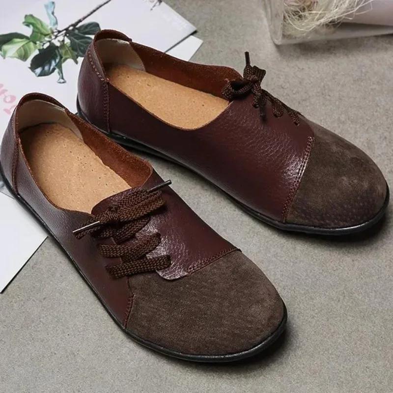 Women Leather Moccasins Flats Shoes Woman Sneakers Lace-Up Casual Ladies Driving Shoes Round Toe PU Loafers Zapatos De Mujer