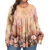 Modă Damă Mărimi Mari Top Casual Imprimat cu Mânecă Lungă și Guler Rotund Plisat