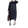 JINJUDUO Cotton Linen Plus Size Solid Color Extra Long Loose Dress (Black, XXL)