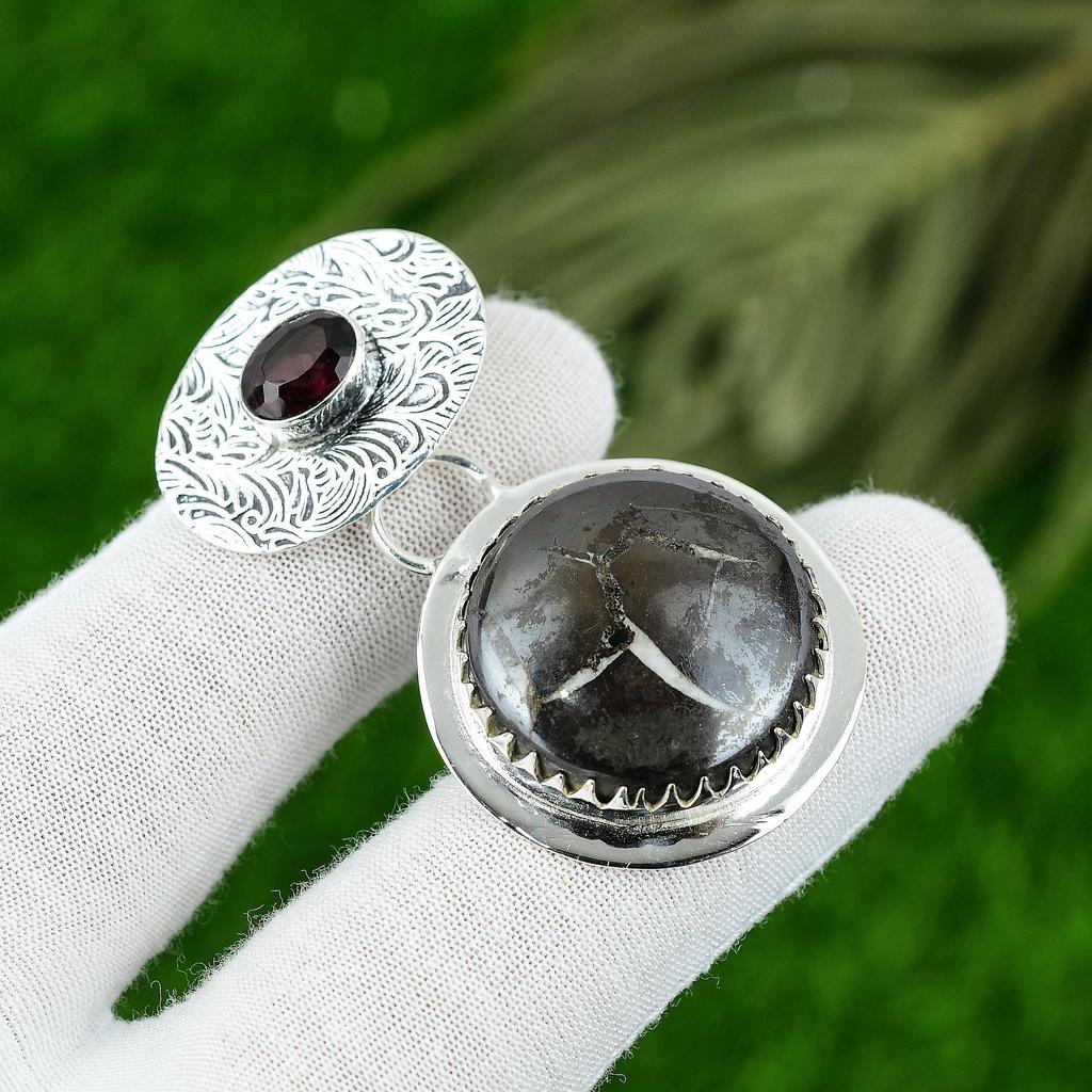 Natural Moroccan Mud Crack Fossil Gemstone 925 Sterling Silver Pendant For Girls