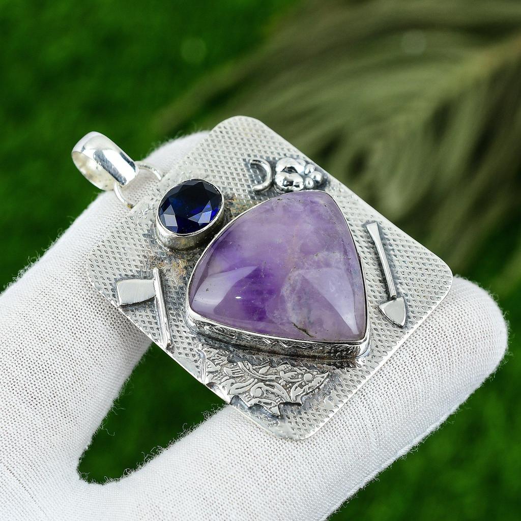 Natural Star Amethyst Gemstone Jewelry 925 Sterling Silver Pendant For Women