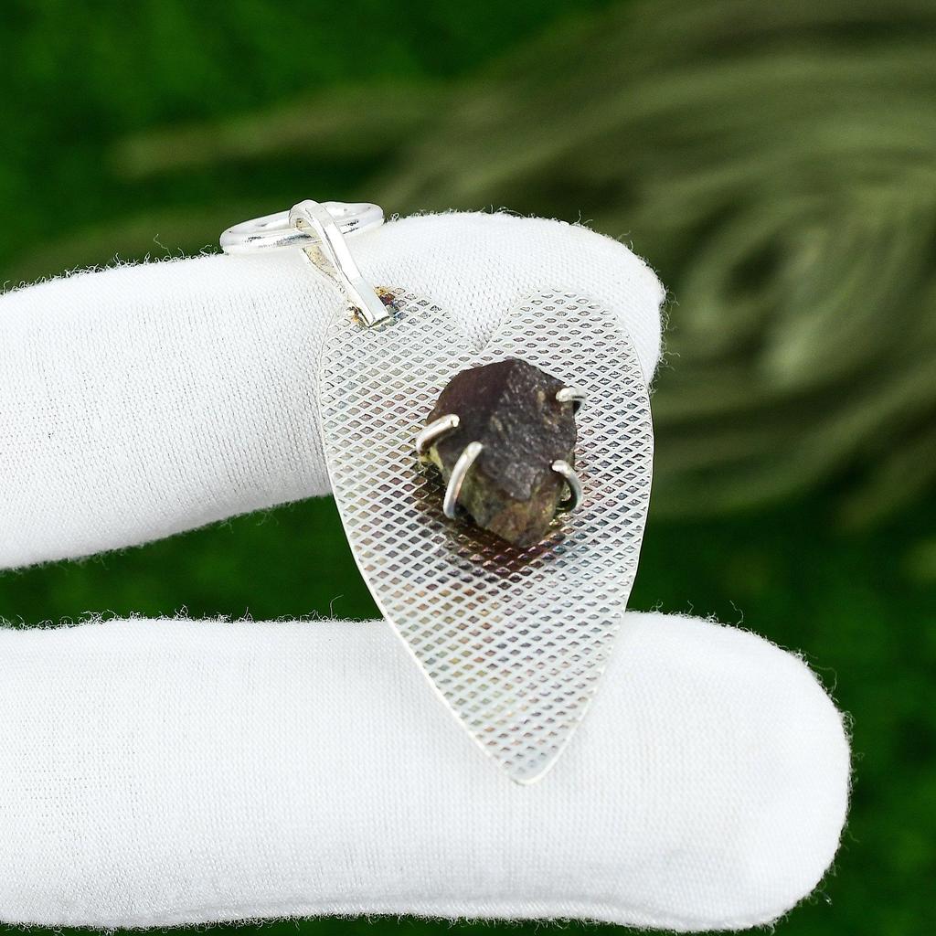 925 Sterling Silver Pentagon Natural Morganite Rough Anniversary Pendant Jewelry